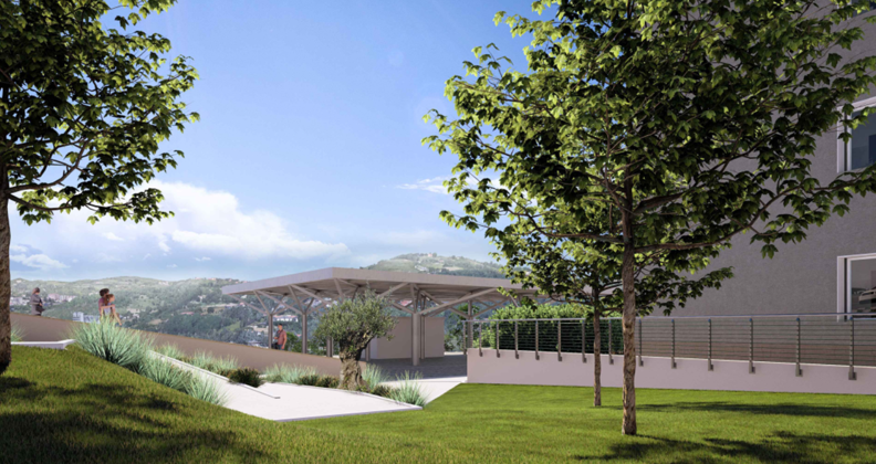 Il nuovo sistema di Piazzza del Settore 05, i parcheggi, i percorsi ciclabili e pedonali, le aree a verde e gli spiazzi dei settori 08 e 09 sono stati progettati ridefinendo le sagomature dei terrazzamenti esistenti, rimuovendo i muri di sostegno esistenti e sostituendoli laddove possibile con terrazzamenti a secco.